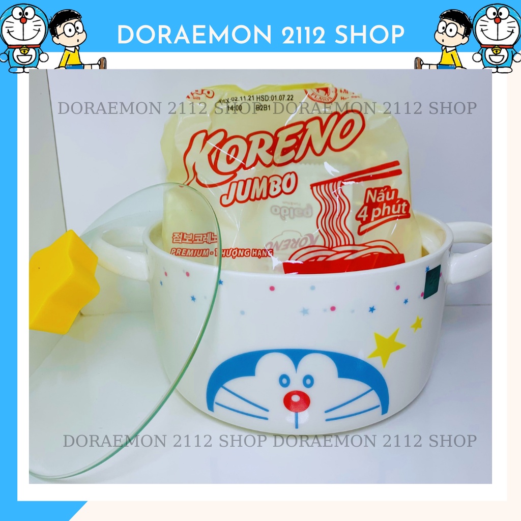 TÔ SỨ ĂN MỲ hình chiếc nồi Doraemon có nắp thủy tinh