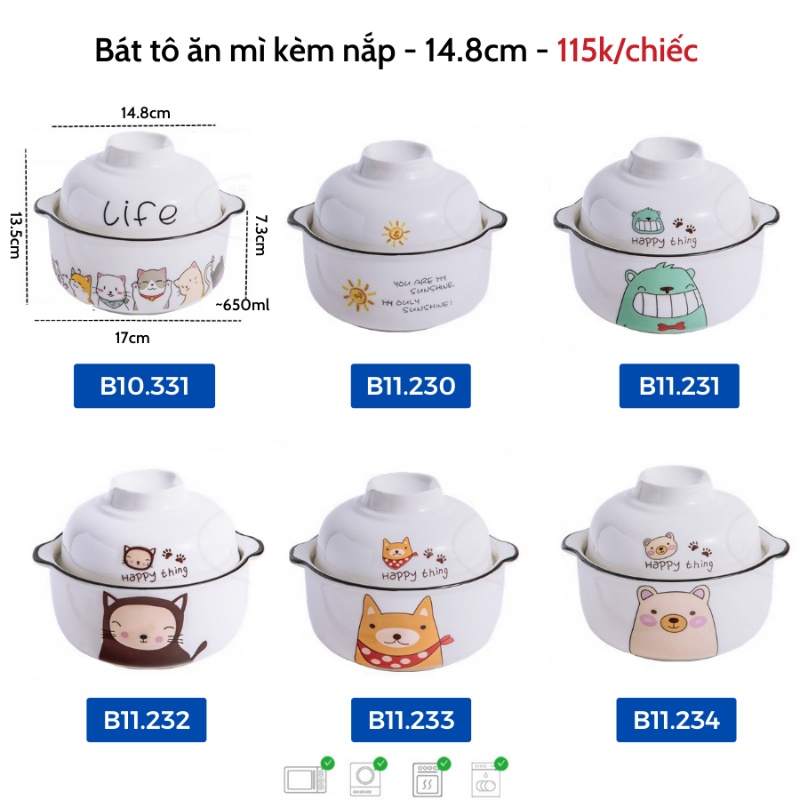 Nhà cửa & Đời sống > Bộ đồ bàn ăn > Tô || Tô sứ, bát ăn mì có nắp bằng sứ siêu dễ thươngCòn hàng