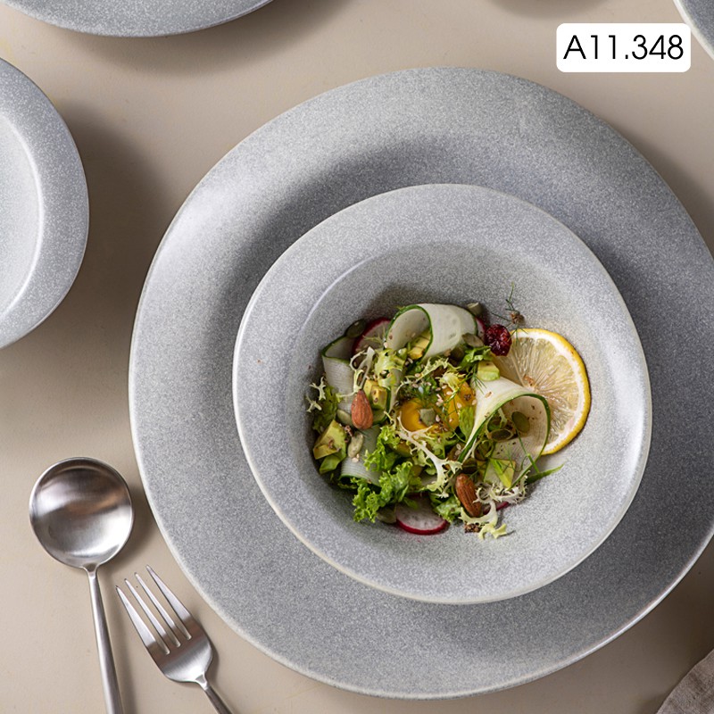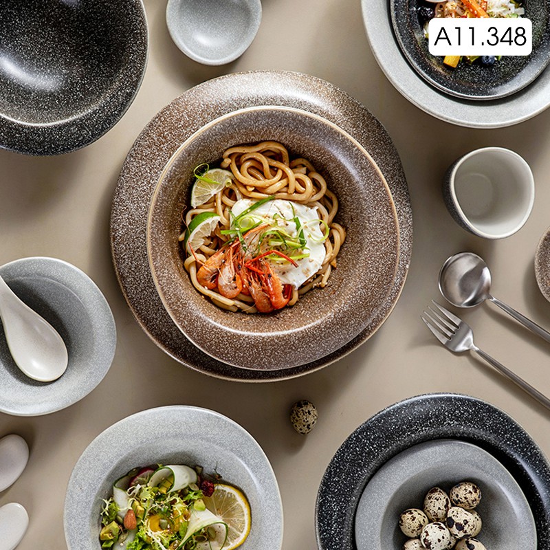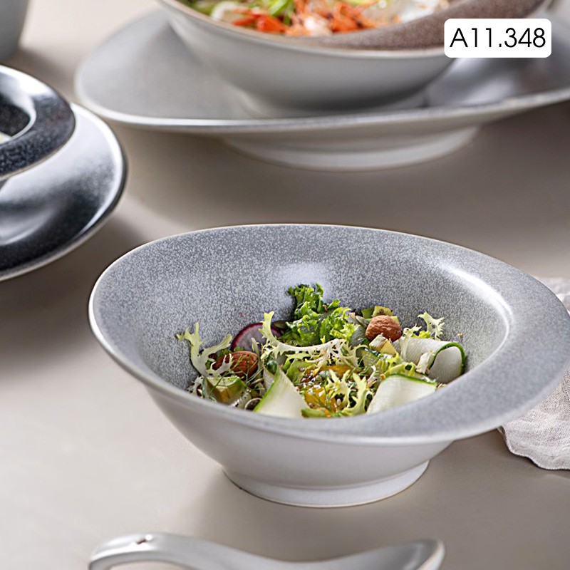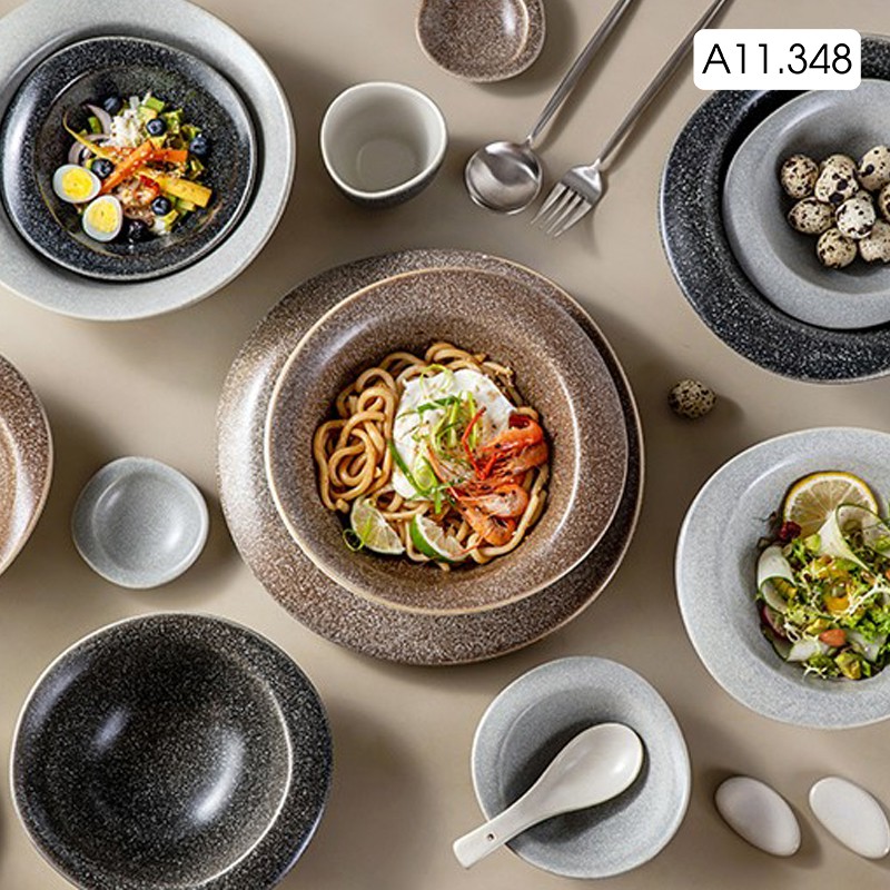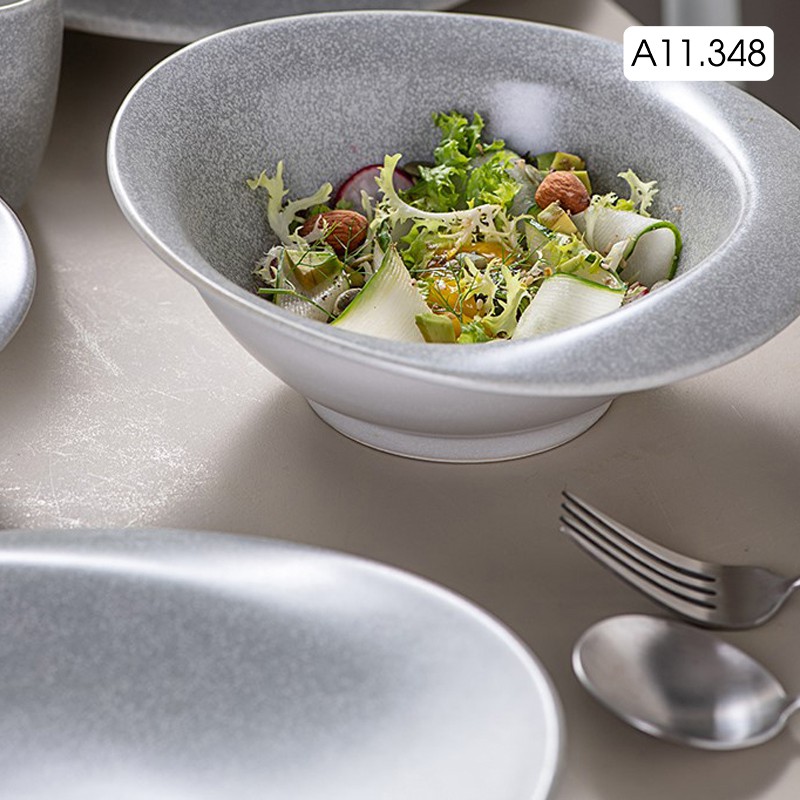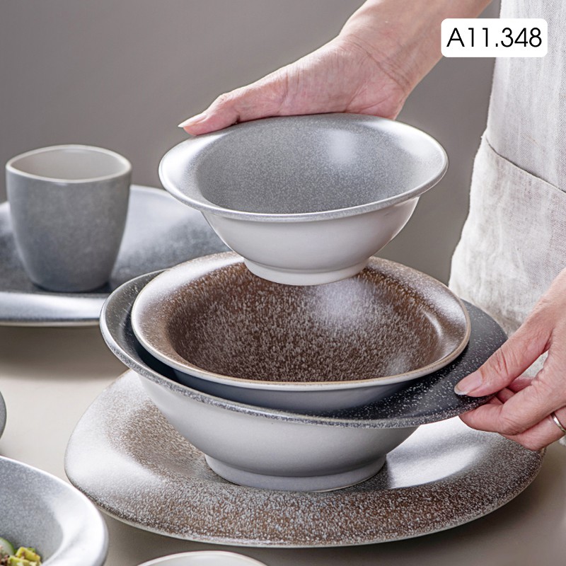 Tô sứ, bát sứ cách điệu dùng ăn soup, ăn mì màu xám phong cách Nhật Bản
