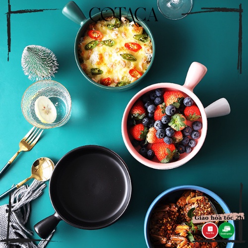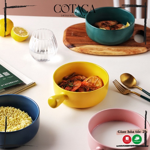 Nhà cửa & Đời sống > Bộ đồ bàn ăn > Tô || Tô sứ, bát sứ có tay cầm tiện dụng để được lò vi sóng, phong cách Hàn QuốcCòn hàng