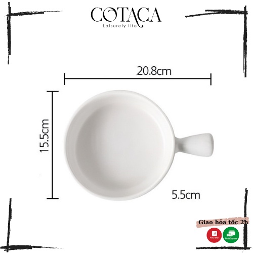 - Chất liệu sứ cao cấp (nấu nướng, dùng cho lò vi sóng, lò nướng, bày trí bàn ăn thì quá đẹp luôn) An toàn cho tủ lạnh, lò vi sóng, lò nướng, máy rửa bát...