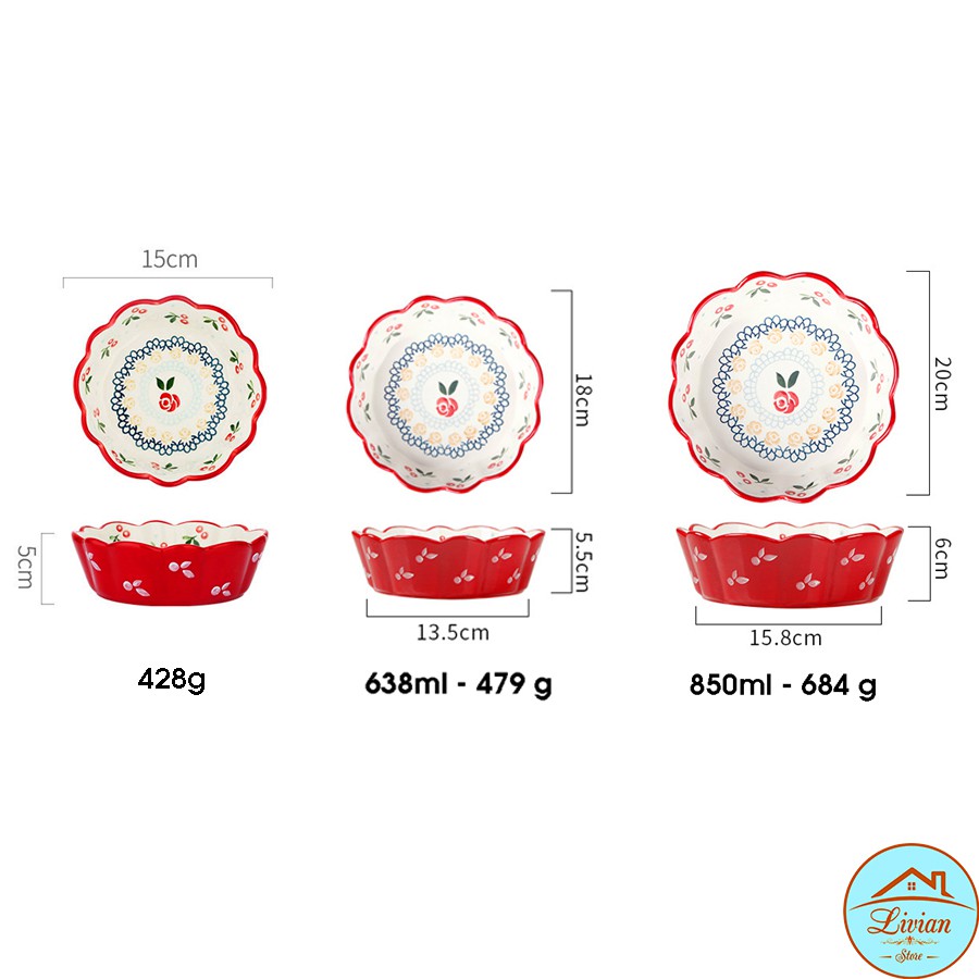 � Kích thước: Tô sứ cherry có 3 kích thước: 15cm, 18cm và 20cm