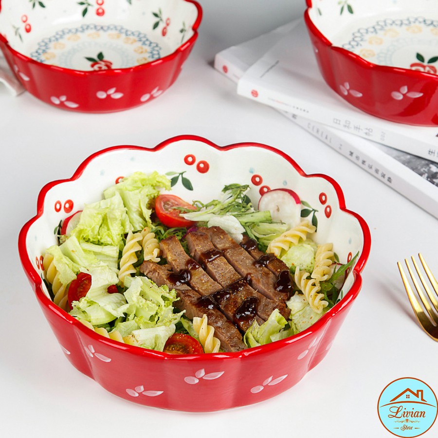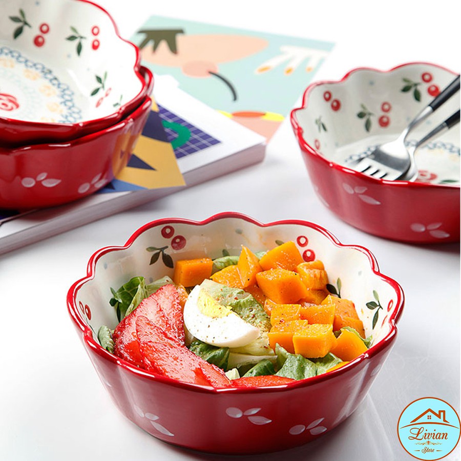 Nhà cửa & Đời sống > Bộ đồ bàn ăn > Tô || Tô sứ - bát sứ viền hoa họa tiết cherry sang chảnh phong cách Bắc ÂuCòn hàng
