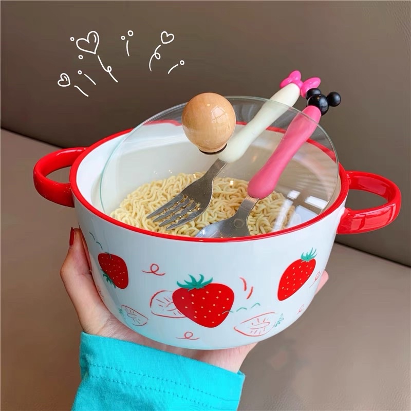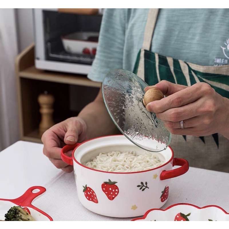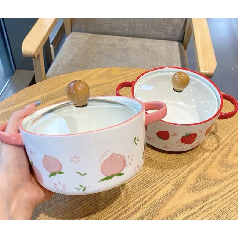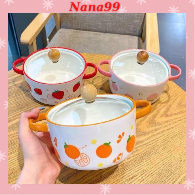 💜Tô sứ cao cấp có nắp đậy có quai cầm- Hoạ tiết hoa quả siêu xinh