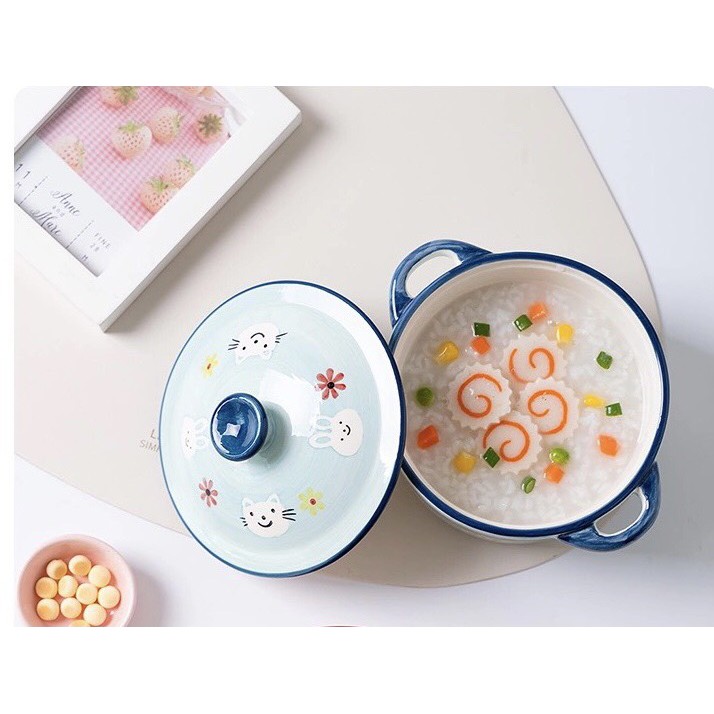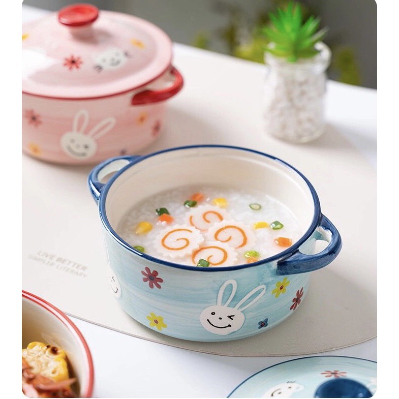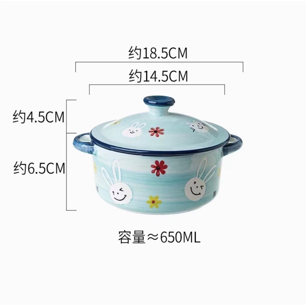 Nhà cửa & Đời sống > Bộ đồ bàn ăn > Tô || Tô sứ có nắp ăn mỳ đựng đồ ăn dung tích 650ml họa tiết thỏ xanhCòn hàng