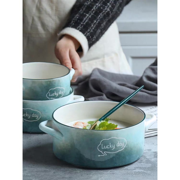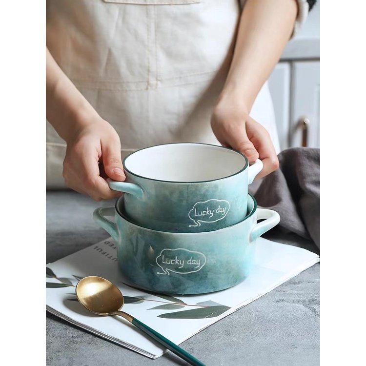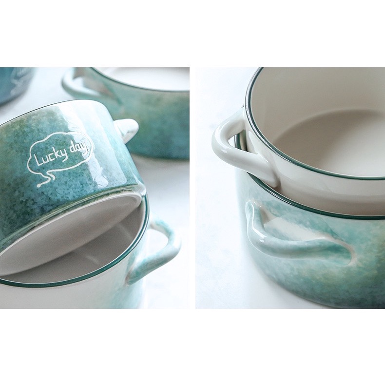 Nhà cửa & Đời sống > Bộ đồ bàn ăn > Tô || Tô sứ có tay cầm Lucky day phong cách Bắc Âu sang trọngCòn hàng