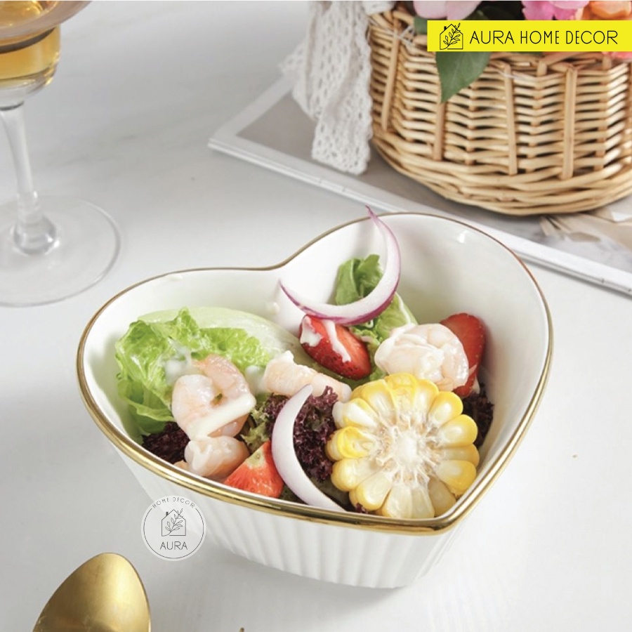 Nhà cửa & Đời sống > Bộ đồ bàn ăn > Tô || Tô Sứ đựng hoa quả/salad viền vàng cao cấpCòn hàng