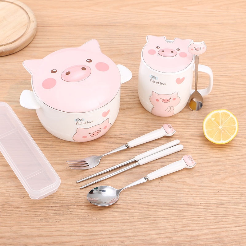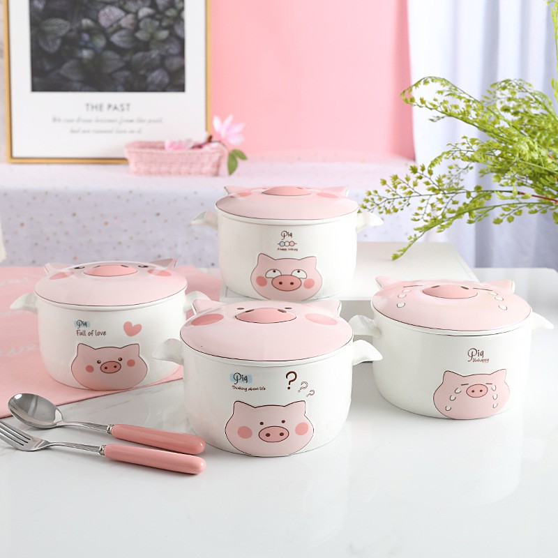 Nhà cửa & Đời sống > Bộ đồ bàn ăn > Tô || Tô sứ hình con heo Tô ăn mì Tô sứ có nắp có tai cầm hoạ tiết heo dễ thương dùng được trong lò vi sóngCòn hàng