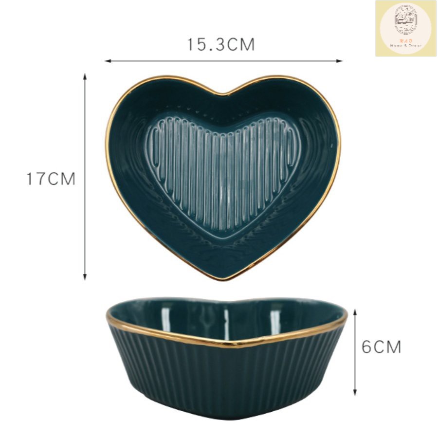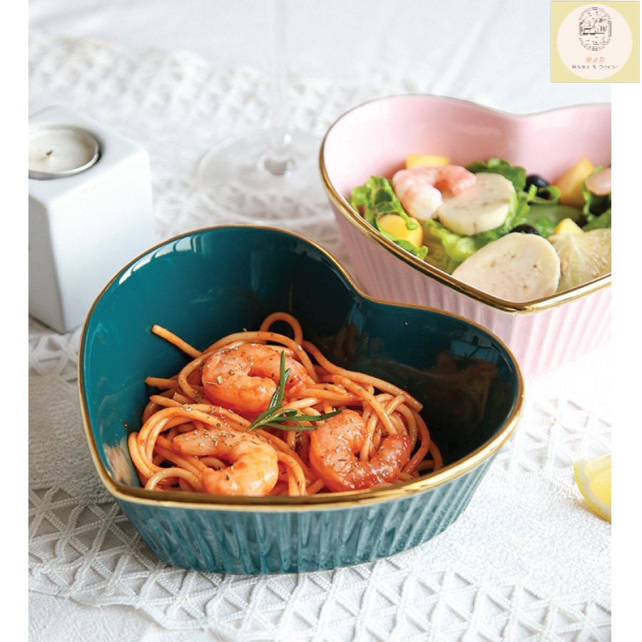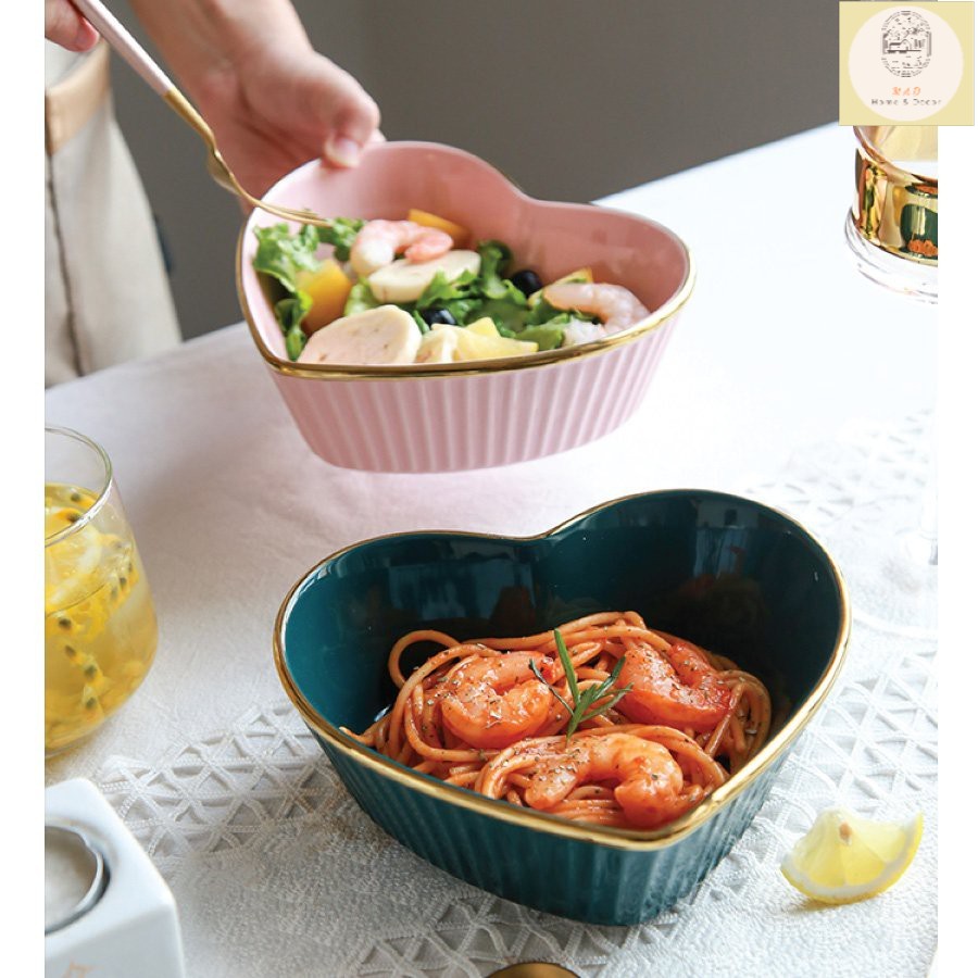 Nhà cửa & Đời sống > Bộ đồ bàn ăn > Tô || Tô sứ hình trái tim đựng hoa quả/salad viền vàng cao cấpCòn hàng