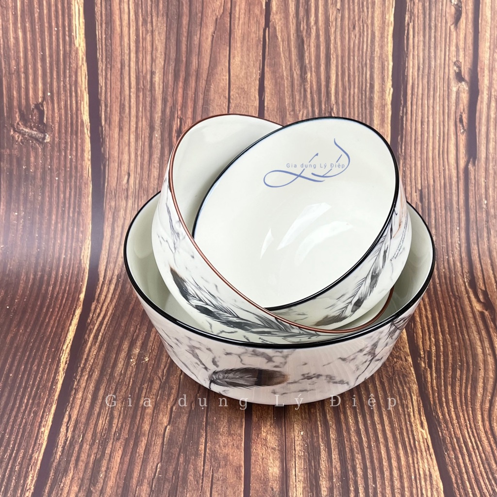 Nhà cửa & Đời sống > Bộ đồ bàn ăn > Tô || Bộ tô sứ hoa văn lông vũ sang trọng, sứ sạch không chì tráng men cao cấpCòn hàng