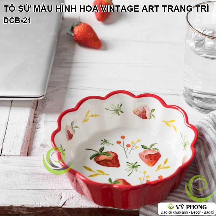 TÔ SỨ MÀU HÌNH HOA VINTAGE LIVING ART TÔ SỨ NHẬT TRANG TRÍ BẾP CHỤP HÌNH ĐẠO CỤ CHỤP ẢNH SẢN PHẨM INS DCB-21
