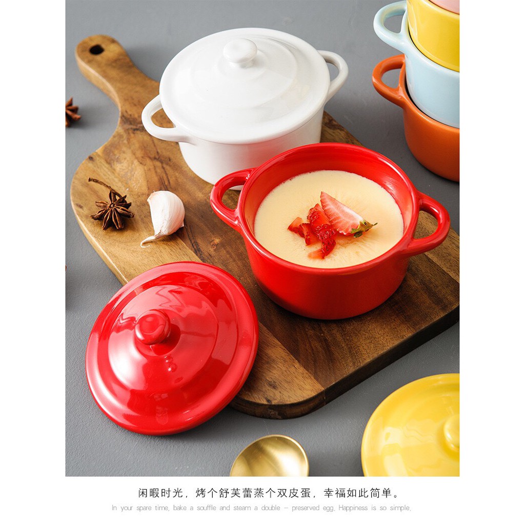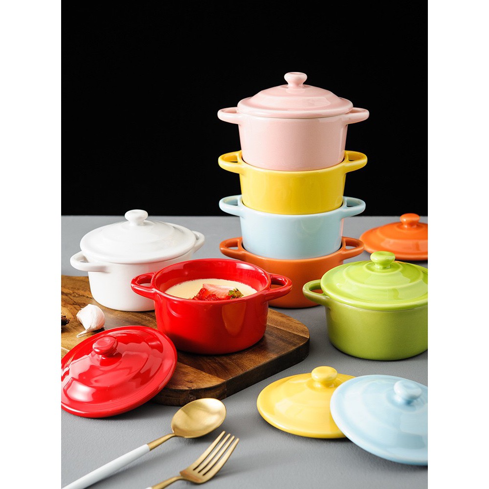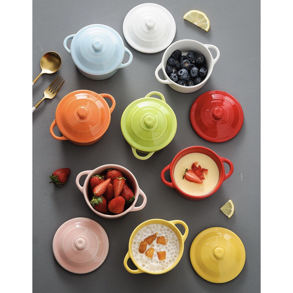 Nhà cửa & Đời sống > Bộ đồ bàn ăn > Tô || Tô sứ mini có nắp đựng đồ ăn dặm chưng yến, ăn súp 7 màuCòn hàng
