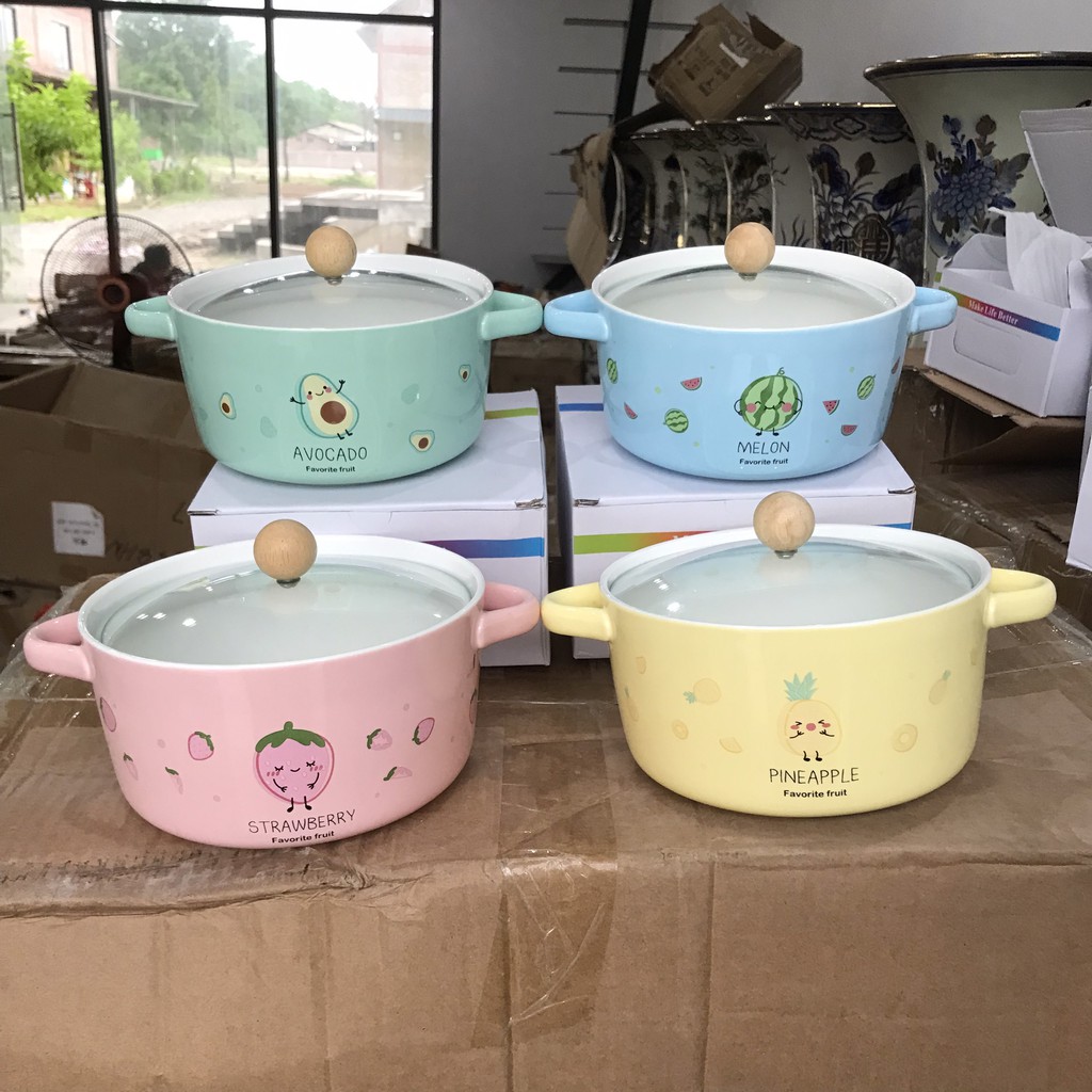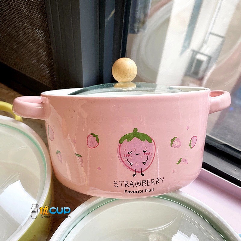 Tô sứ nắp kính hình hoa quả dung tích 900ml