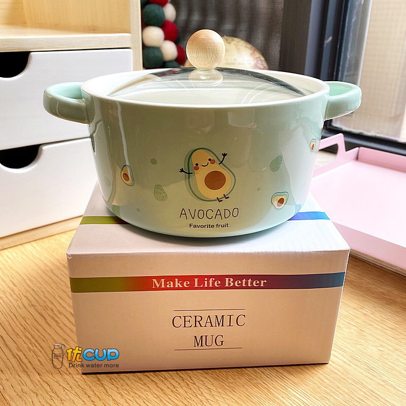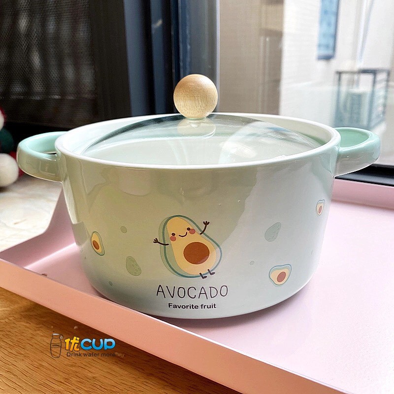 Nhà cửa & Đời sống > Bộ đồ bàn ăn > Tô || Tô sứ nắp kính hình hoa quả dung tích 900mlCòn hàng