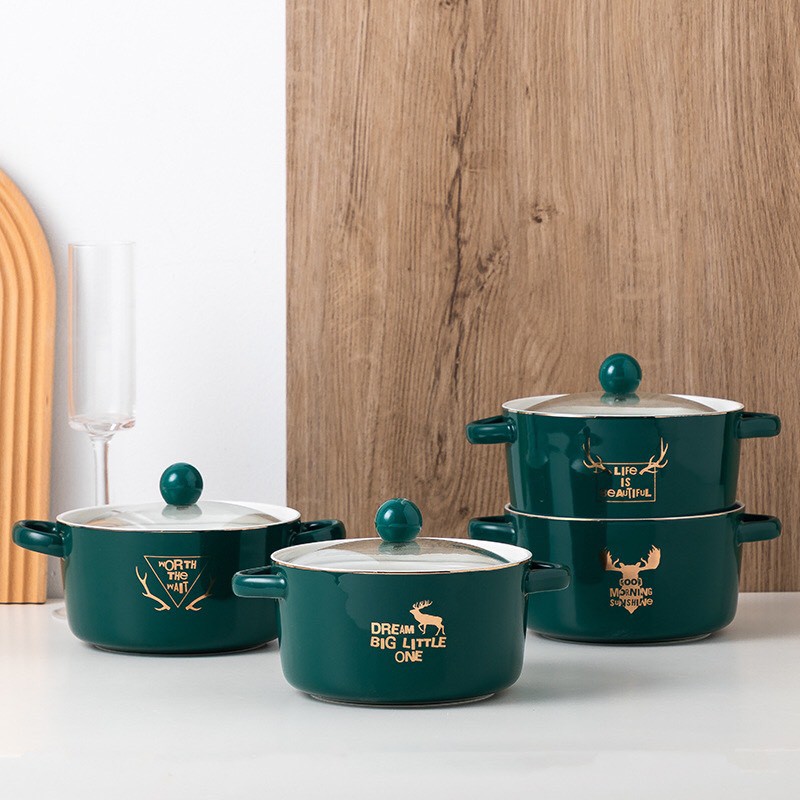 Nhà cửa & Đời sống > Bộ đồ bàn ăn > Tô || Tô sứ nắp kính màu xanh cực sang chảnhCòn hàng