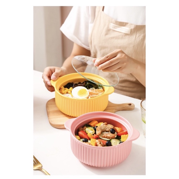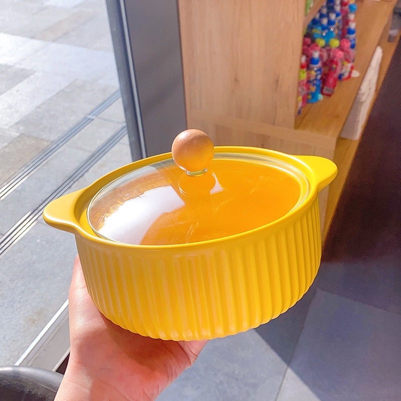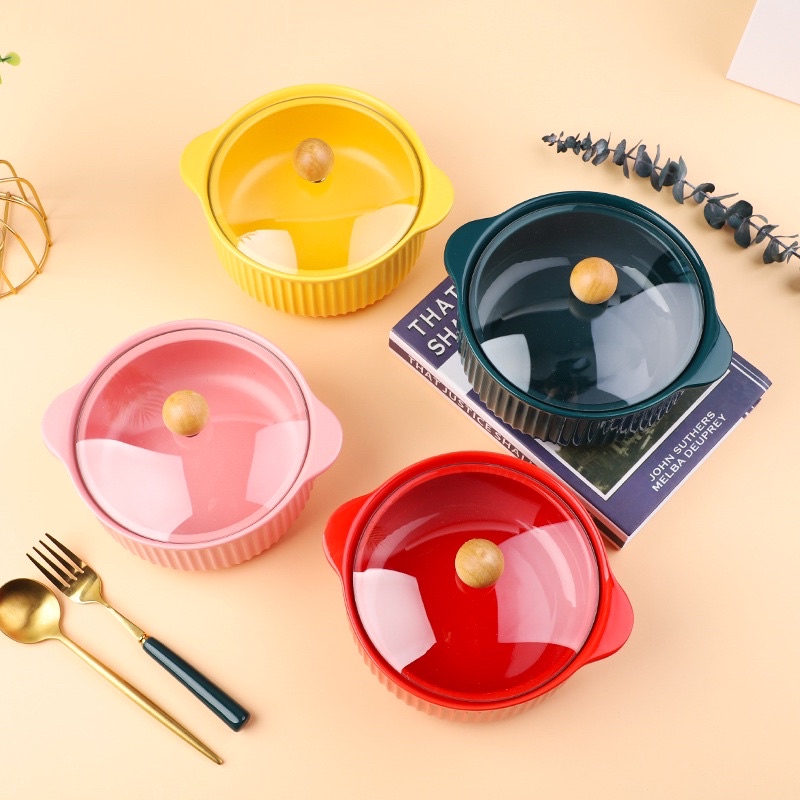 Nhà cửa & Đời sống > Bộ đồ bàn ăn > Tô || Tô sứ sâu lòng 2 tai kèm nắp kính kiểu Bắc ÂuCòn hàng