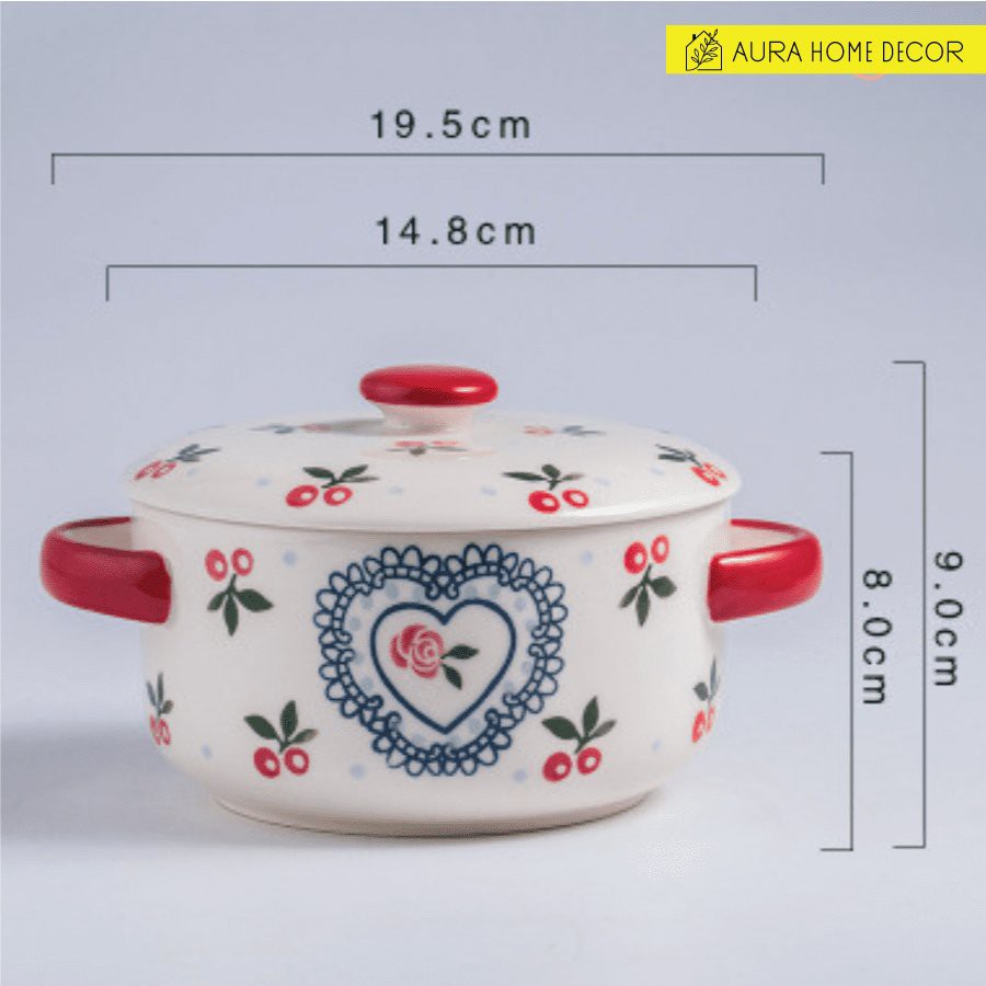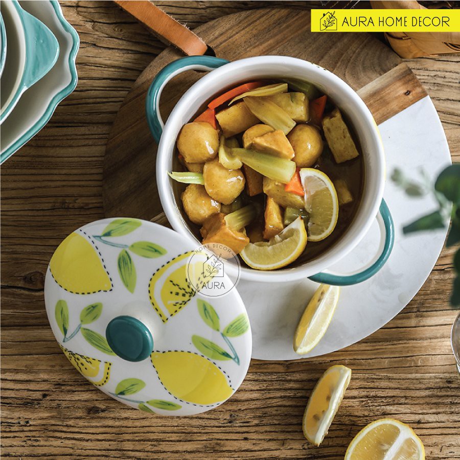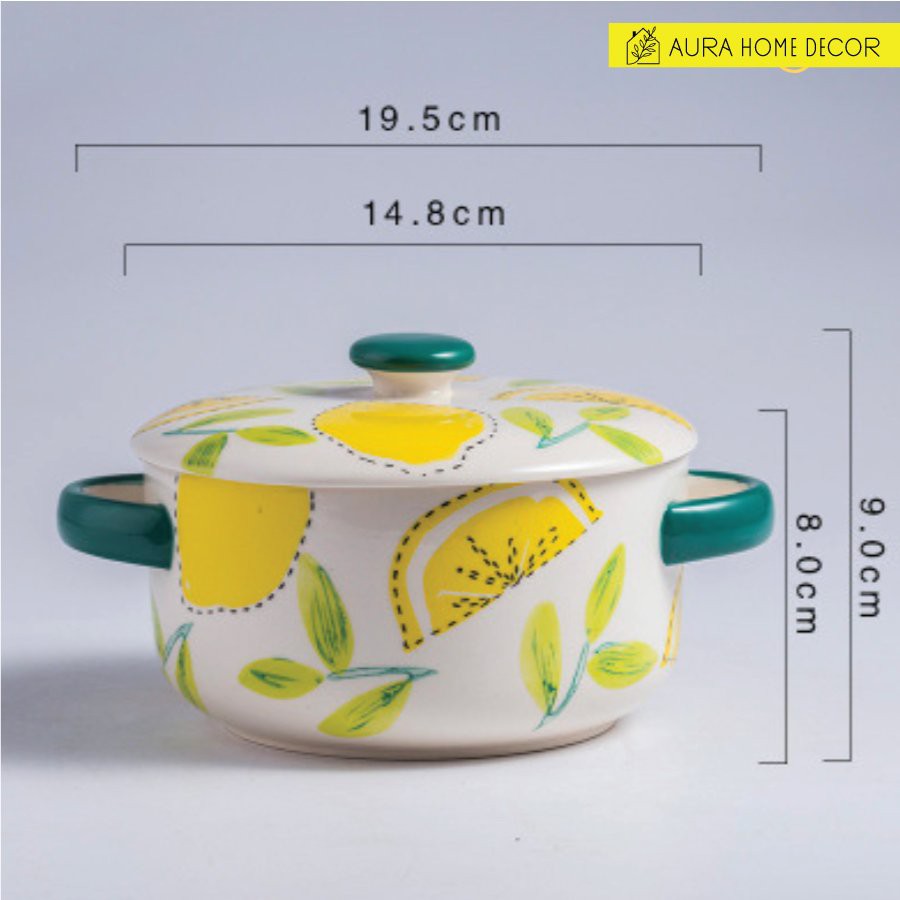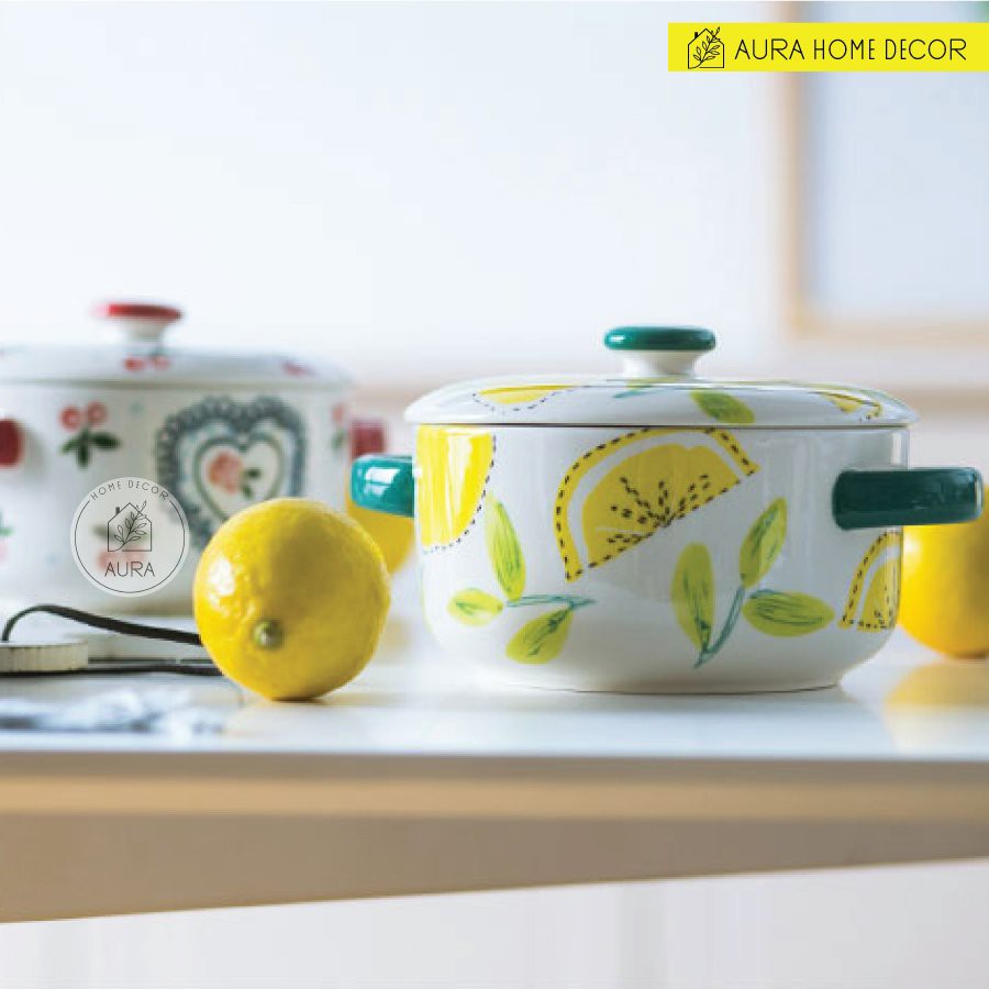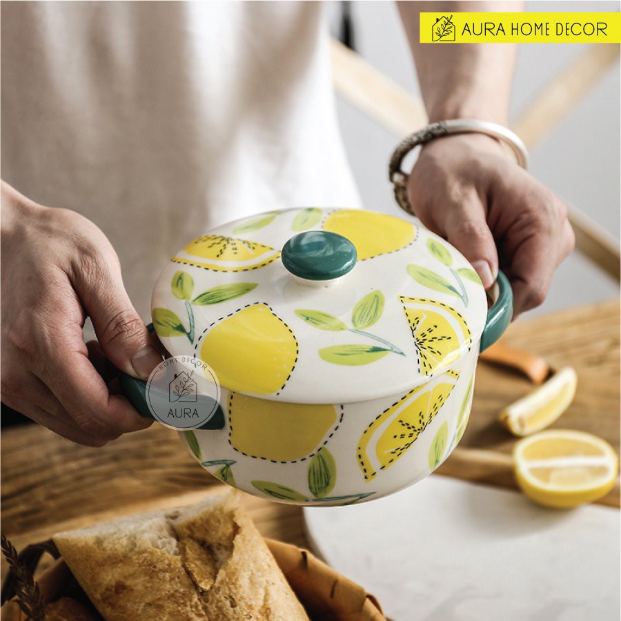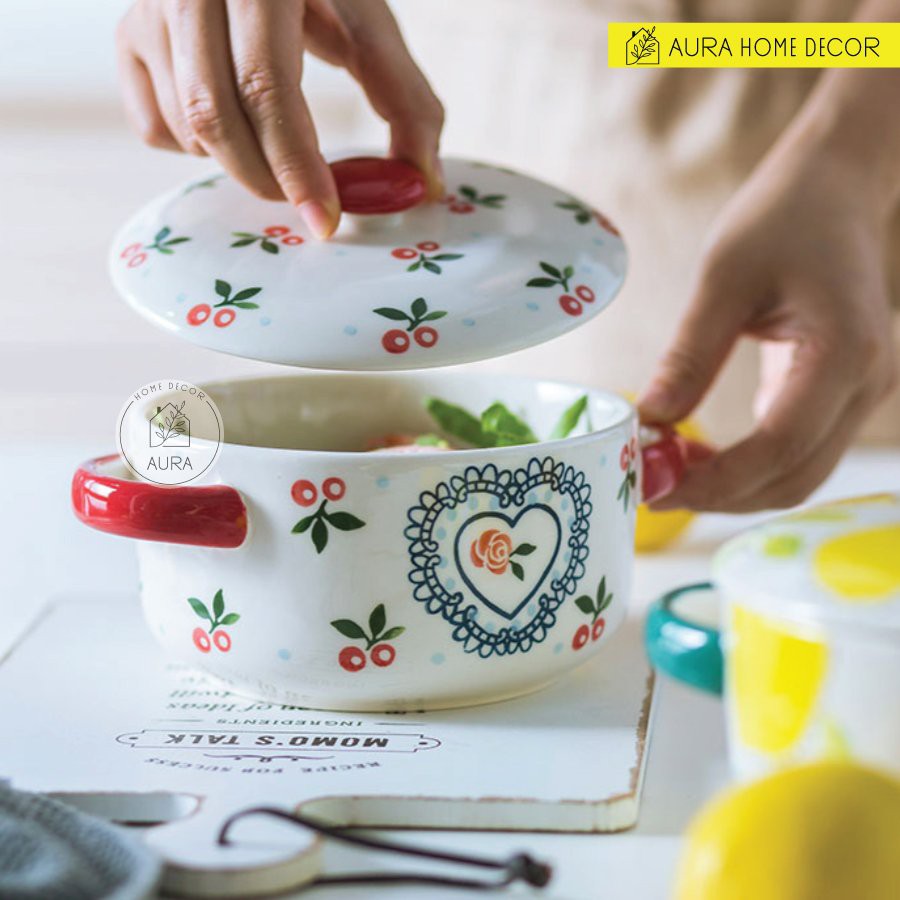 Nhà cửa & Đời sống > Bộ đồ bàn ăn > Tô || Tô sứ, tô ăn mì có nắp kèm tay cầm họa tiết chanh vàng, cherry dung tích 800mlCòn hàng