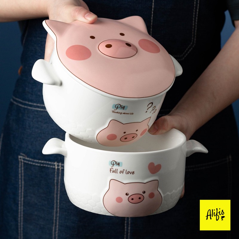 Nhà cửa & Đời sống > Bộ đồ bàn ăn > Tô || Tô sứ, tô ăn mì kèm nắp họa tiết hoạt hình ngộ nghĩnh có tay cầm tiện dụngCòn hàng
