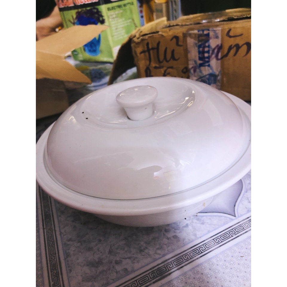 Nhà cửa & Đời sống > Bộ đồ bàn ăn > Tô || tô sứ trắng có nắp đậy kích thước lớn hàng trưng bày thanh líCòn hàng