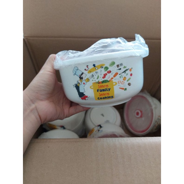 Bát có họa tiết dễ thương.Bát gốm tráng men.