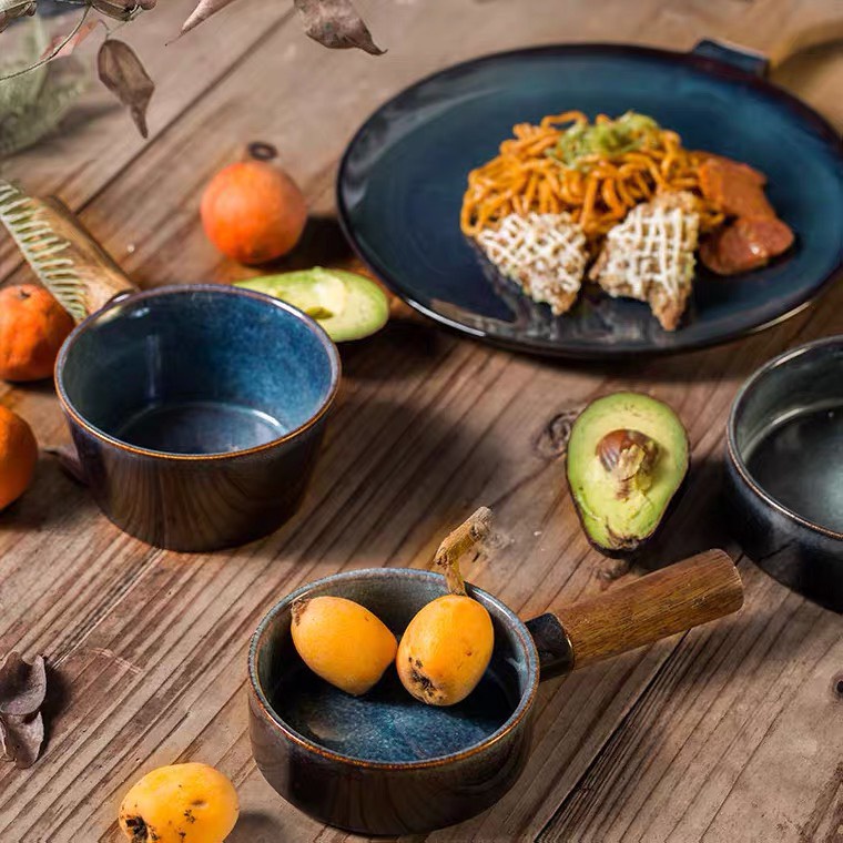 Giới thiệu Tô sứ xanh biển bày hoa quả,chịu nhiệt, bát soup canh, tay gỗ độc lạ, màu sắc lạnh tinh tế sang trọng