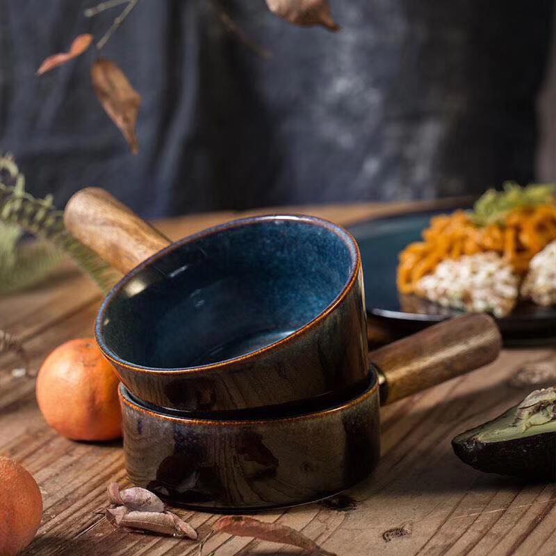 Nhà cửa & Đời sống > Bộ đồ bàn ăn > Tô || Tô sứ xanh biển bày hoa quả,chịu nhiệt, bát soup canh, tay gỗ độc lạ, màu sắc lạnh tinh tế sang trọngCòn hàng