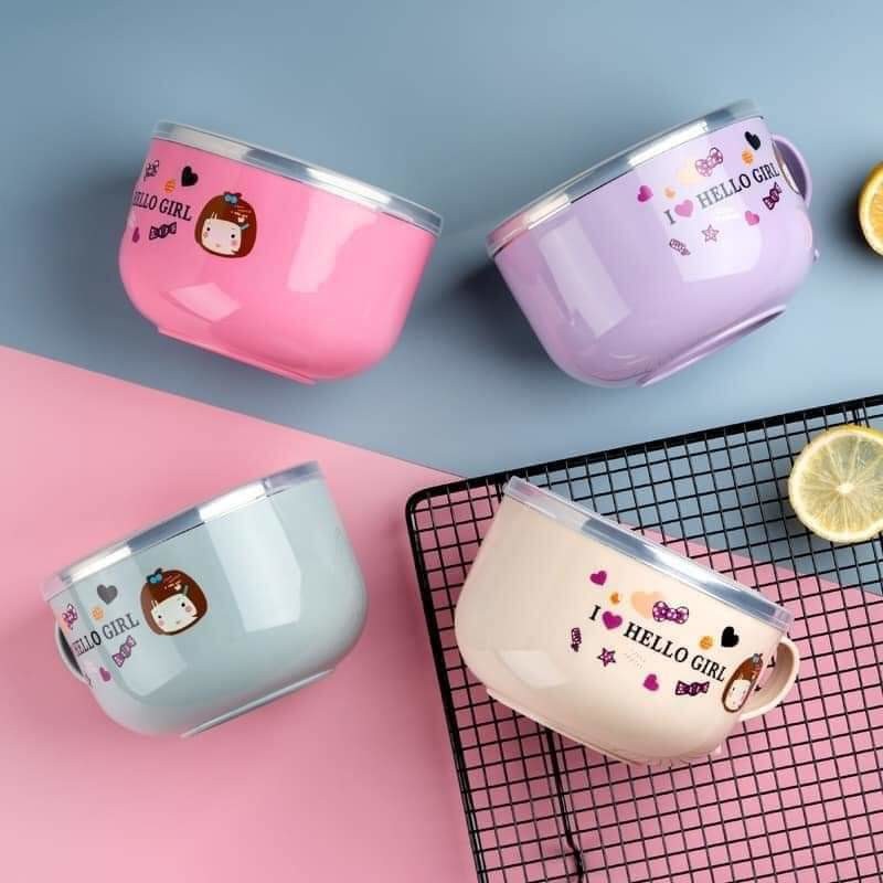 TÔ ĂN MÌ CÁCH NHIỆT CÓ NẮP, KÈM MUỖNG
