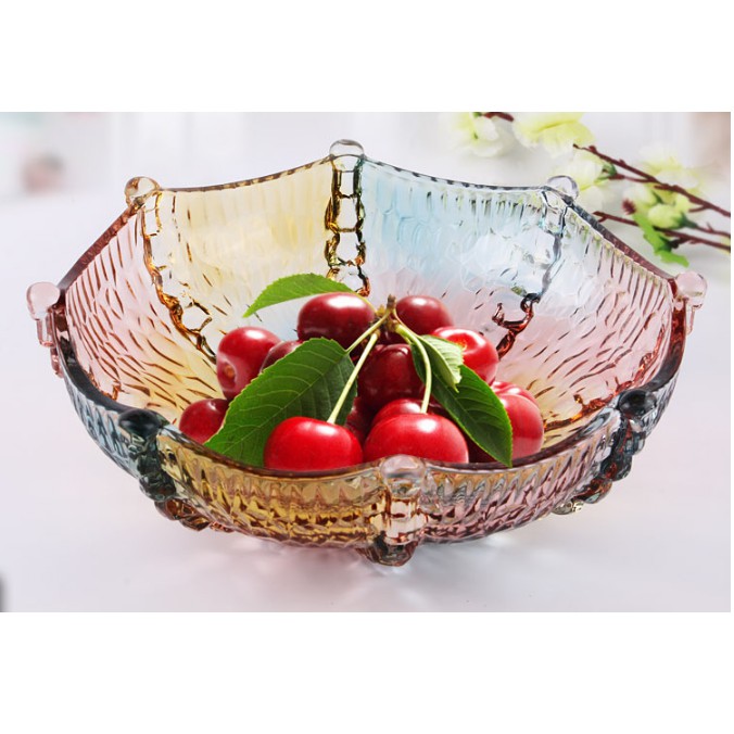 Dĩa thủy tinh hình hoa pha lê cao cấp trang trí hoa quả mức tết nhiều màu sắc - 27.5x9cm
