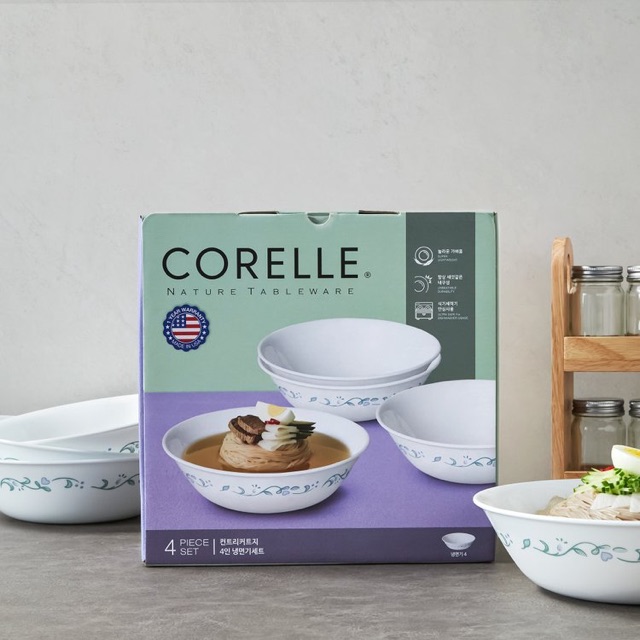 Corelle là thương hiệu được đăng ký bởi WKI Holding Company, Inc., Rosemont, IL 60018. Được giới thiệu vào năm 1970, với sự kết hợp đặc sắc giữa vẻ đẹp và độ bền, Corelle đã nhanh chóng trở thành một trong những thương hiệu đồ dùng bàn ăn hàng đầu tại Mỹ. Độ bền của sản phẩm Corelle có được do cấu trúc xếp lớp đặc sắc của 3 lớp thủy tinh đặc biệt được ép chặt với nhau gọi là Vitrelle. Vì thế, các sản phẩm thủy tinh của Corelle rất mỏng, nhẹ nhưng lại khó sứt mẻ, bể vỡ và còn rất dễ chùi rửa các vết bẩn. Corelle cũng rất ưu ái khi thiết kế rất nhiều mẫu mã, hoa văn dành riêng cho thị trường châu Á.