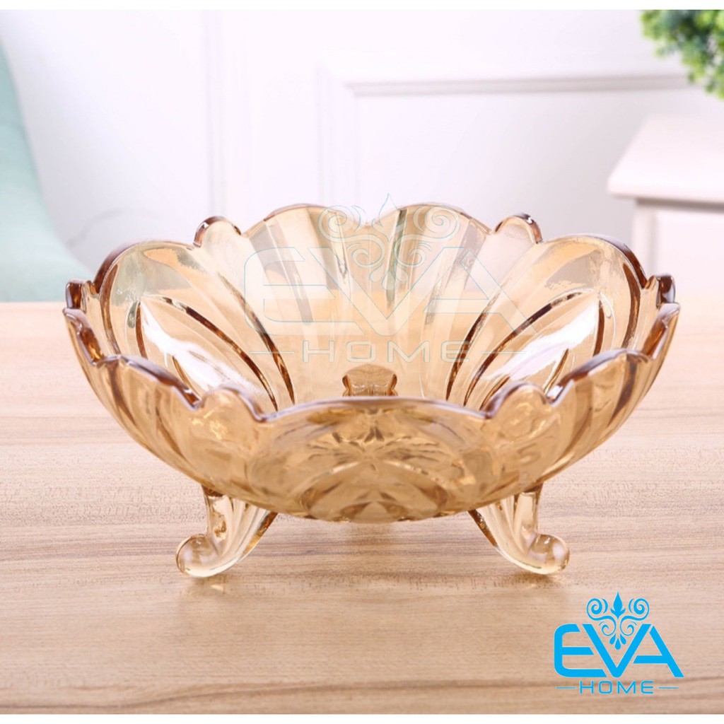 Tô Thuỷ Tinh Pha Lê Vàng 3 Chân Đựng Hoa Quả / Thố Mứt Tết / Dĩa Đựng Hoạ Quả Thuỷ Tinh Màu 3 Chân M3338