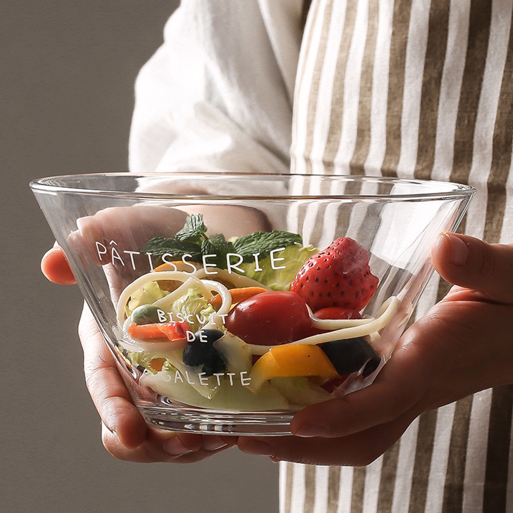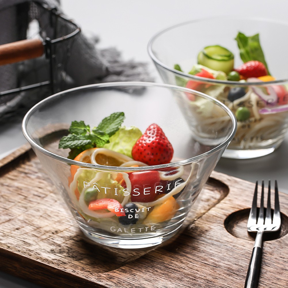 Nhà cửa & Đời sống > Bộ đồ bàn ăn > Tô || Tô thủy tinh trong suốt, bát salad thuỷ tinh in chữ trang trí – Phong cách Hàn Quốc cho tín đồ Healthy FoodCòn hàng