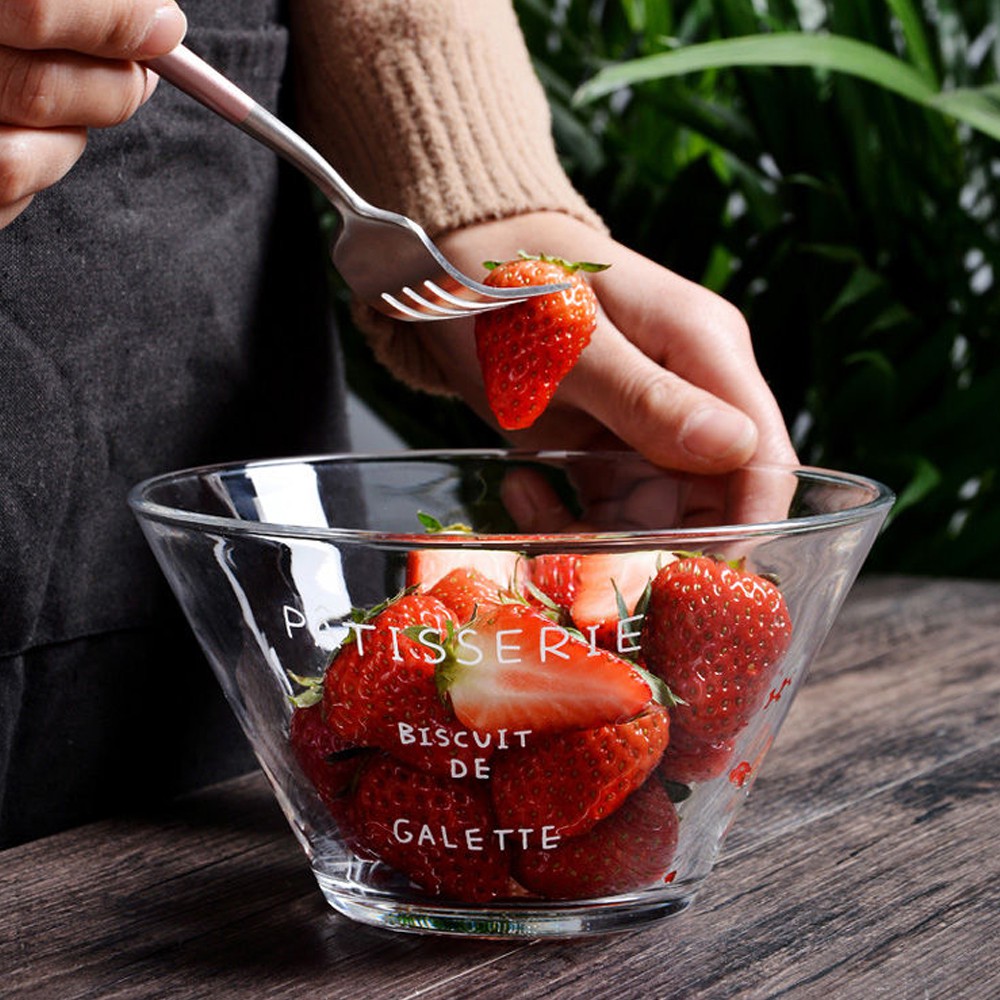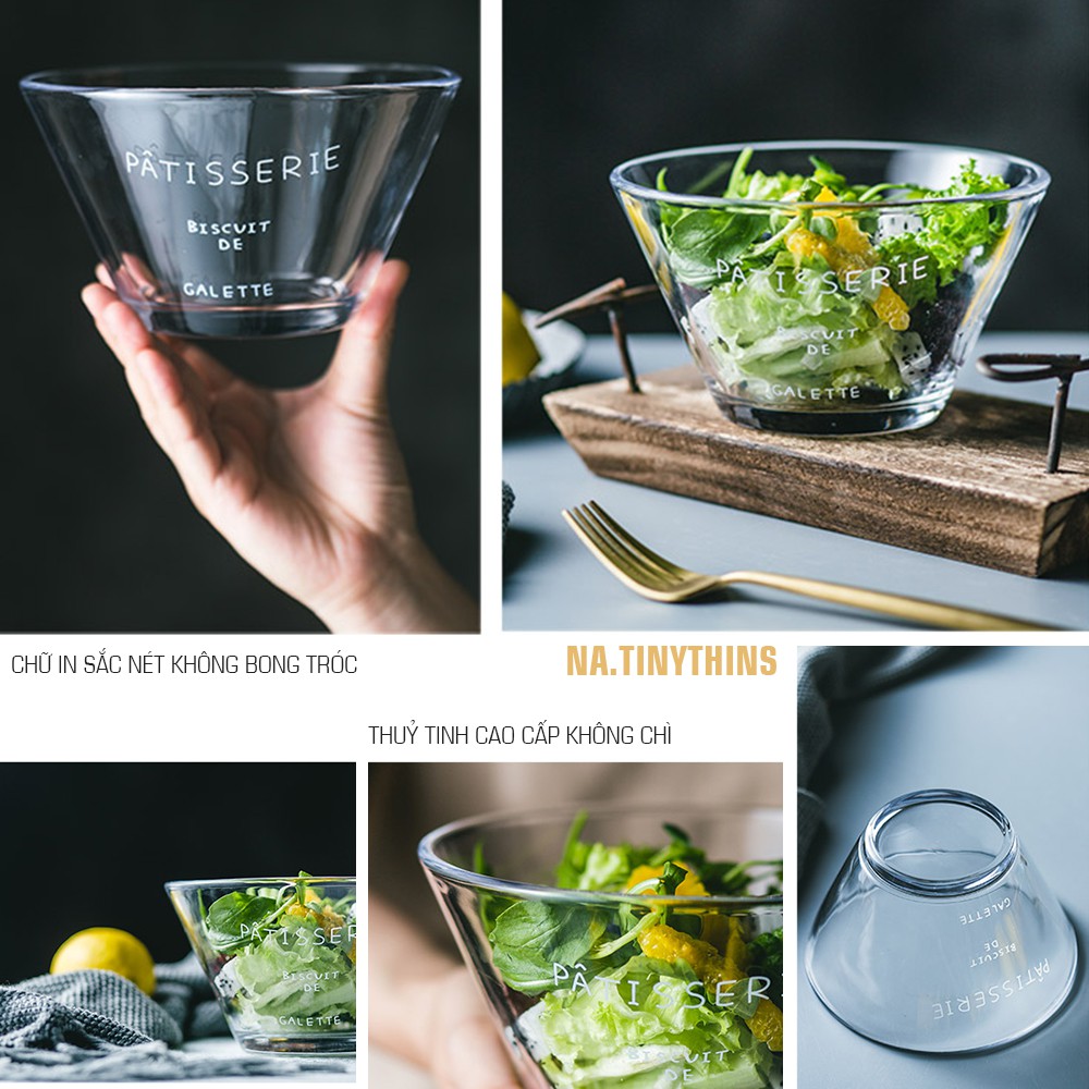 Tô thủy tinh trong suốt, bát salad thuỷ tinh in chữ trang trí – Phong cách Hàn Quốc cho tín đồ Healthy Food