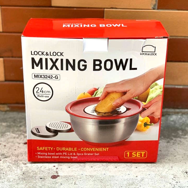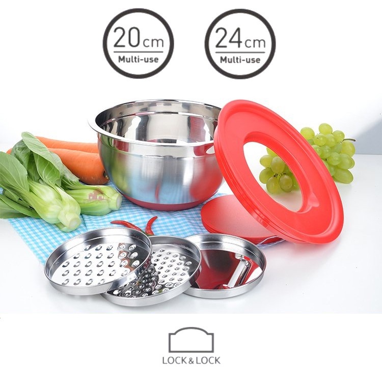 Nhà cửa & Đời sống > Dụng cụ nhà bếp > Bàn nạo, dụng cụ bào, cắt || Bộ tô trộn, bào cắt rau củ bằng inox, có đế chống trượt Lock&Lock 20/24cm Mix32x2Còn hàng