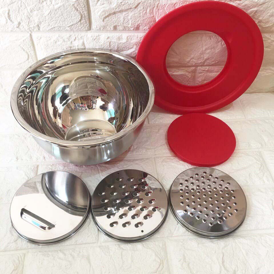 - Dùng để mài củ quả và trộn thực phẩm : Bộ sản phẩm đi kèm 3 bàn mài với các chi tiết khác nhau giúp bạn dễ dàng nạo các loại củ quả đồng đều thành các hình dạng khác nhau, sau đó thực phẩm sẽ rơi xuống lòng bát giúp bạn có thể trộn trực tiếp, tạo ra các loại nộm, salad... ngon miệng một cách dễ dàng và không tốn nhiều thời gian