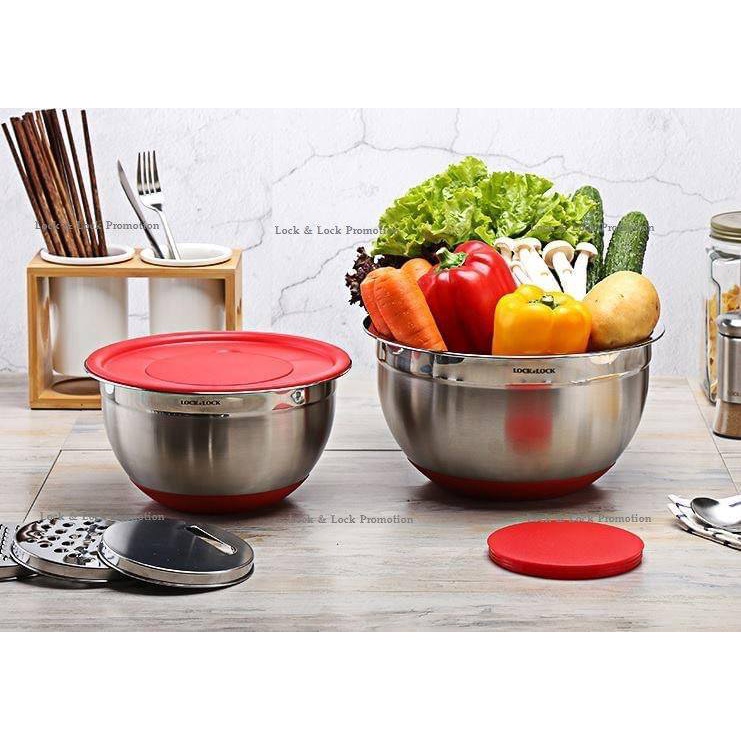 Bộ tô trộn inox và bàn mài Lock&Lock MIX3202-G/ MIX3242-G, kích thước 20cm/24cm