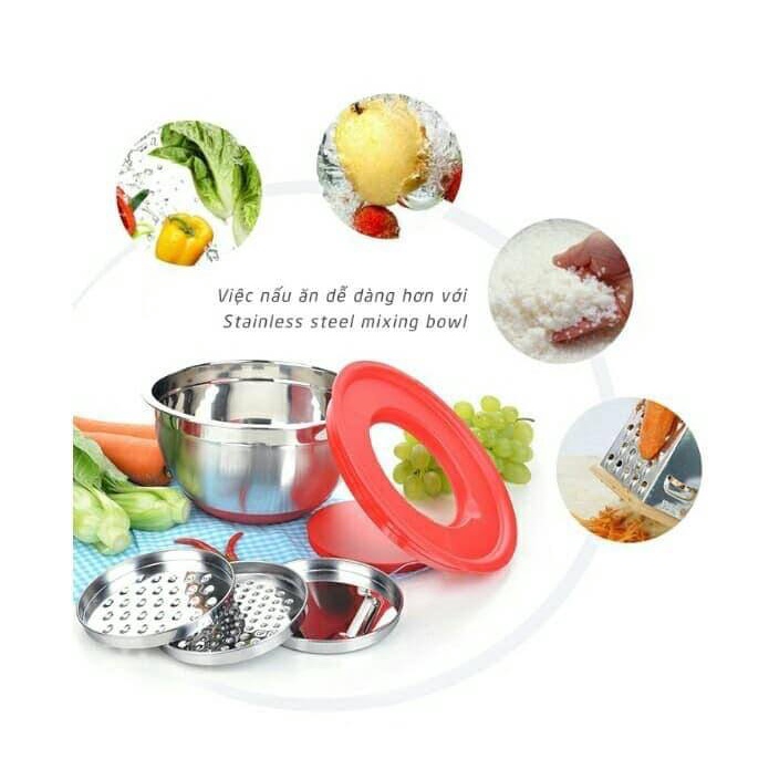 - Bộ tô trộn inox và bàn mài Lock&Lock MIX3202-G/ MIX3242-G, kích thước 20cm/24cm- Thiết kế 2 trong 1 thông minh, tiện dụng giúp nạo củ quả và trộn thực phẩm dễ dàng làm các món chả nem, trộn Salad, trộn bánh,… rất tiện lợi.