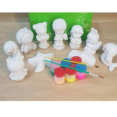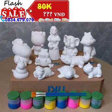 Bộ tô tượng màu cho bé được làm từ thạch cao với những hình đáng yêu màu trắng, bé hãy sử dụng màu và bút vẽ kèm theo để tô tóc, mắt, trang phục....giúp bức tượng thêm sinh động và sống động nhé. Sau khi tô xong, bé để khô là có thể làm vật trang trí cho căn phòng của mình. Ngoài ra, trò tô tượng còn giúp t-Rẻ nhất phát triển khả năng nghệ thuật, sử dụng màu sắc và rèn luyện tính tỉ mỉ khi tô những chi tiết nhỏ.Bộ gồm tượng nhỏ nhiều hình, cho bé thỏa sức sáng tạo