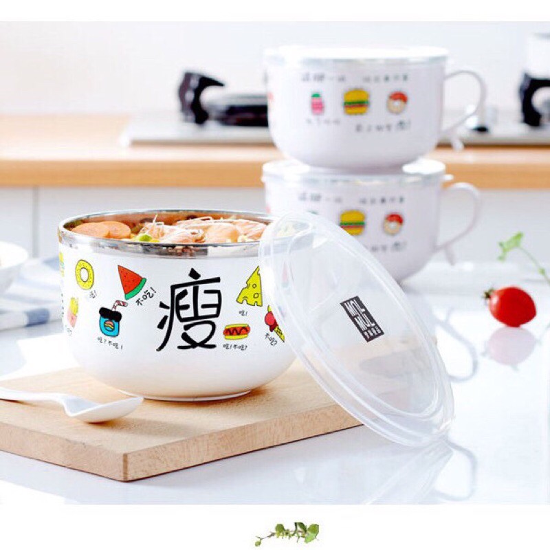 Nhà cửa & Đời sống > Bộ đồ bàn ăn > Tô || tô úp mì lồng inox [FREESHIP] Tô chống nóng kèm muỗng có nắp họa tiết hoạt hìnhCòn hàng