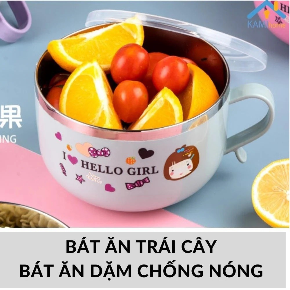Bát úp mỳ chống nóng có nắp kiểu Nhật lớp trong inox lớp ngoài nhựa cách nhiệt in hình dễ thương