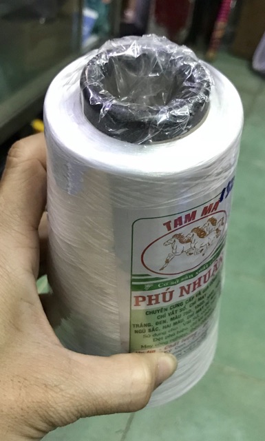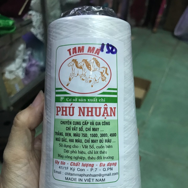 Chỉ tơ vắt sổ cuộn nhỏ, sợi 150. Khoảng 250g/ cuộn.Chỉ trắng 39k/ cuộn.