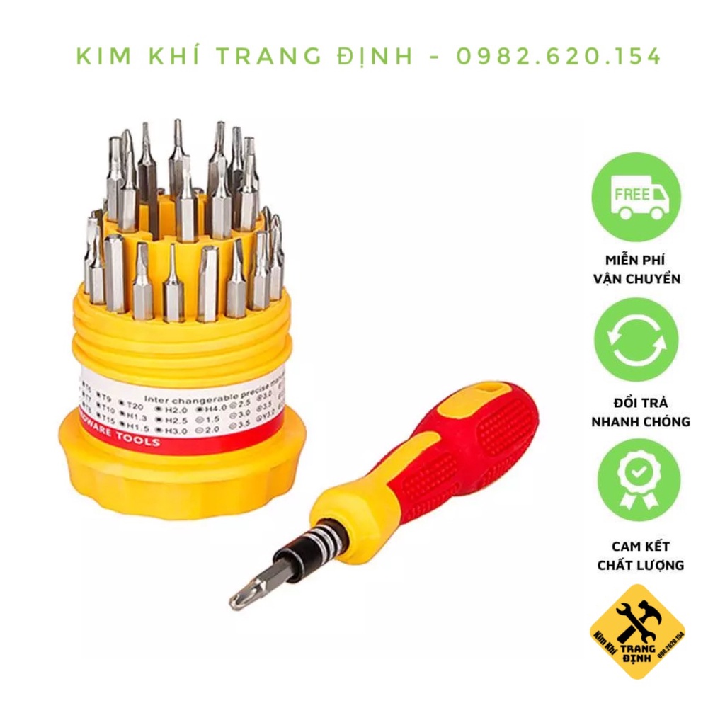 Bộ tua vít 31 đầu cỡ nhỏ dành cho sửa chữa đồ điện tử, gia dụng như máy vi tính, laptop, điện thoại di động, xe đạp..Sản phẩm được thiết kế đủ tất cả các loại đầu vít thường dùng trong linh kiện điện tử như đầu dẹt, đầu 2 lỗ, tam giác, lục giác, 3 cạnh, 4 cạnh, 5 cạnh và 6 cạnh, mỗi dạng đều có đủ các cỡ từ lớn đến nhỏ.
