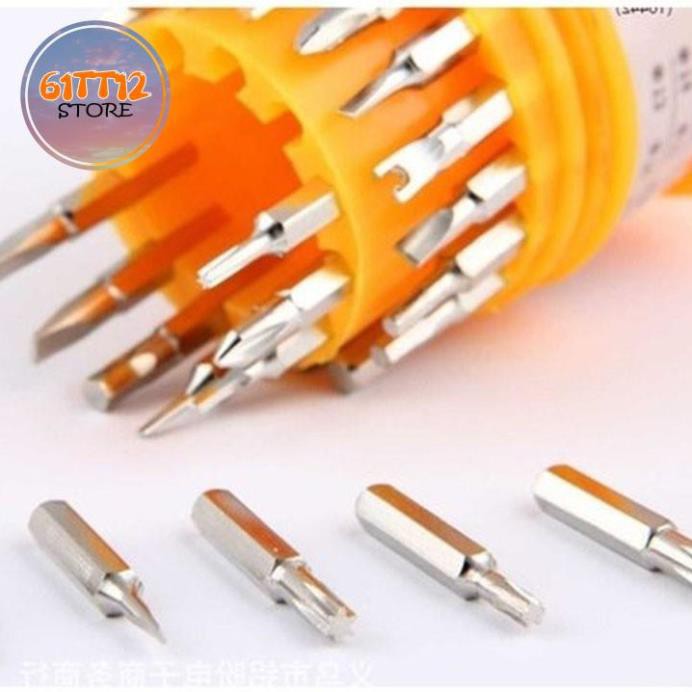 – Bộ sản phẩm gồm 31 đầu vít với đầy đủ các dạng đầu và kích cỡ: dẹt, tam giác, lục giác, hay các đầu từ 3 đến 6 cạnh.