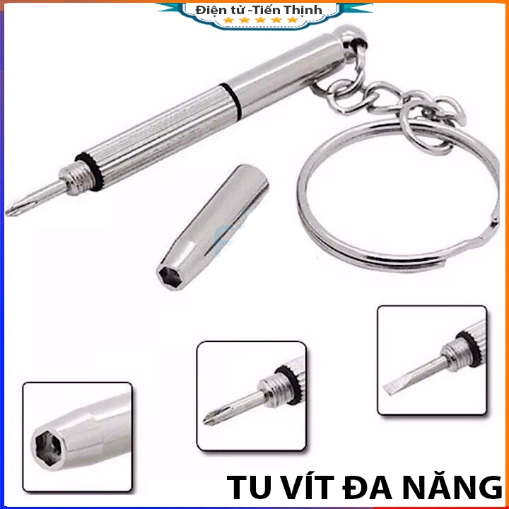 Chiếc tua vít nhỏ này có 2 đầu 1 đầu 4 cạnh và 1 đầu 2 cạnh. Với kích thước mini, chiếc tua vít này phù hợp để tháo mở gọng kính, đồng hồ hay cả những ốc vít nhỏ trên điện thoại của bạn.Chất liệu: kim loại