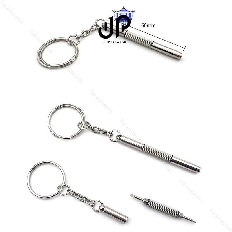 Móc khóa tua vít đa năng dùng để sửa chữa đồng hồ kính mátChiếc tua vít nhỏ này có 2 đầu 1 đầu 4 cạnh và 1 đầu 2 cạnh. Với kích thước mini, chiếc tua vít này phù hợp để tháo mở gọng kính, đồng hồ hay cả những ốc vít nhỏ trên điện thoại của bạn.