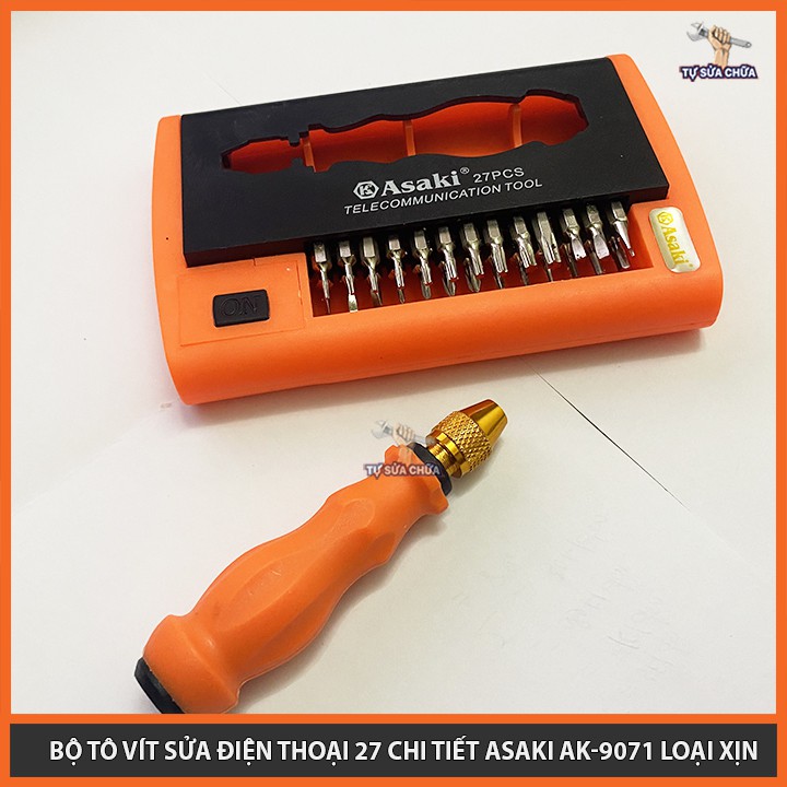 Nhà cửa & Đời sống > Dụng cụ & Thiết bị tiện ích > Dụng cụ > Hộp dụng cụ cầm tay || Bộ tô vít sửa điện thoại 27 chi tiết chính hãng Asaki AK-9071, đầy đủ các mũi vít, mở được tất cả các loại ốc vítCòn hàng