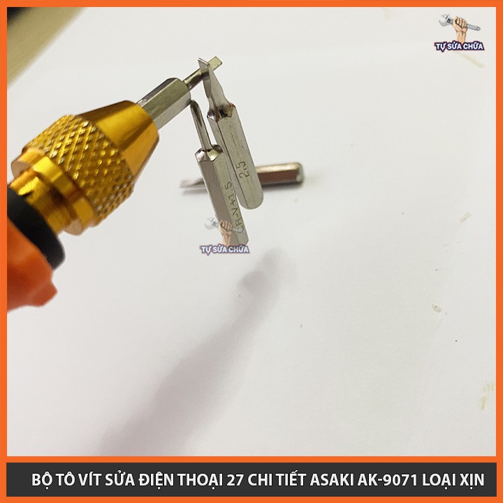 Bộ tô vít sửa điện thoại 27 chi tiết chính hãng Asaki AK-9071, đầy đủ các mũi vít, mở được tất cả các loại ốc vít