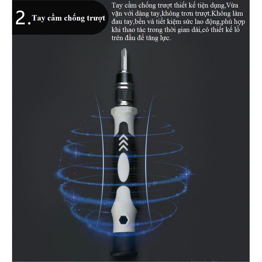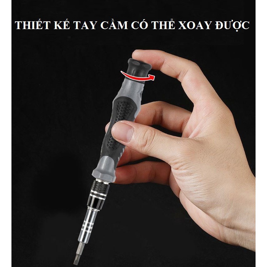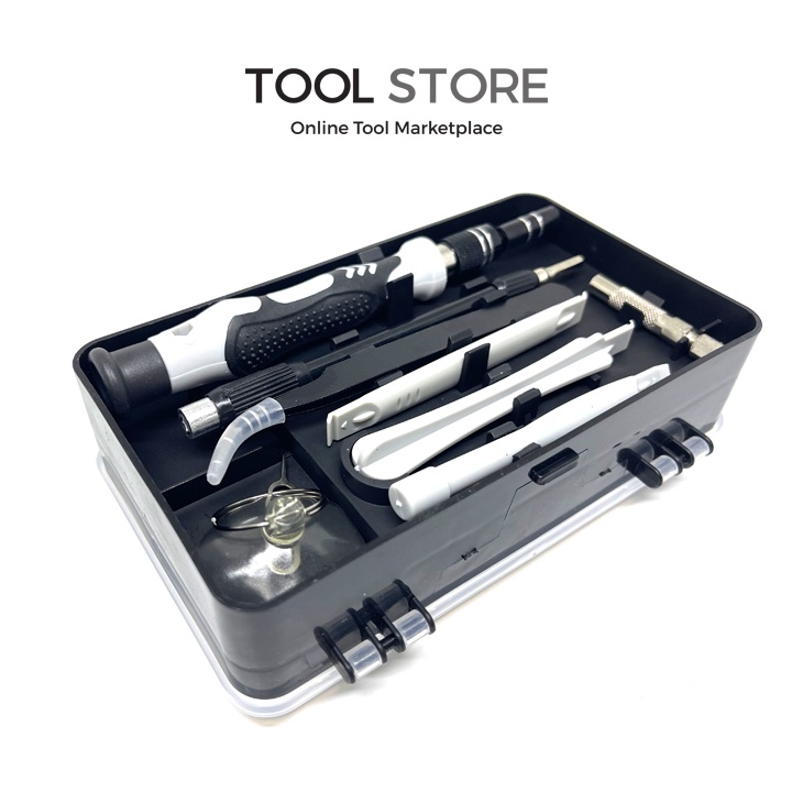 Đặc điểm: hộp nhựa cứng , gồm các đầu vít, nhíp, lẫy nhựa , Cục tạo từ tính