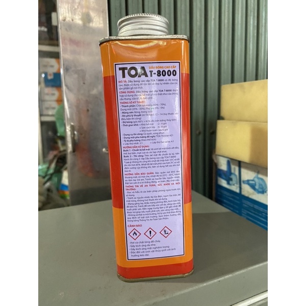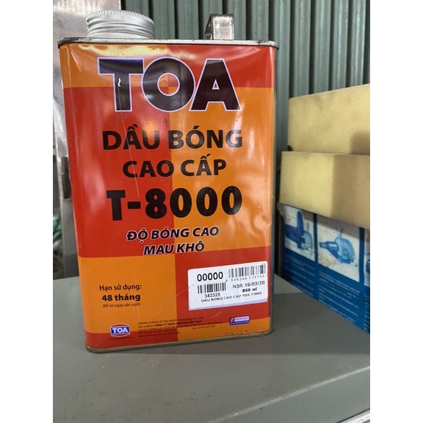 Dầu Bóng TOA (T-8000)Dầu Bóng TOA sử dụng cho đồ gỗ nội thất với độ bóng cao. Dầu Bóng TOA được sử dụng rông rãi cho hầu hết các sản phẩm gỗ cần bản vệ bề mặt nhưng vẫn luôn giữ được vân tự nhiên của gỗ.