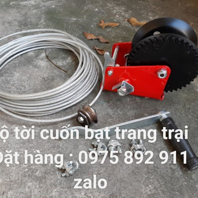 Sản phẩm bao gồm1 tời , 15m cáp , 4 khóa cáp , 1 ròng rọc thiết kế bởi Mai Dung