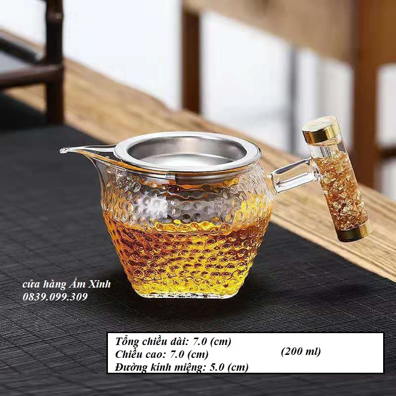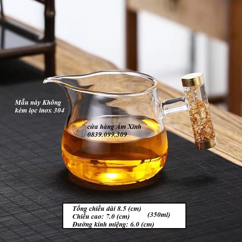 Tống chuyên trà thủy tinh chịu nhiệt cao cấp (Cán vảy vàng 24K)+ Kích thước & Dung tích: Có ghi chú trên ảnh của từng mẫu